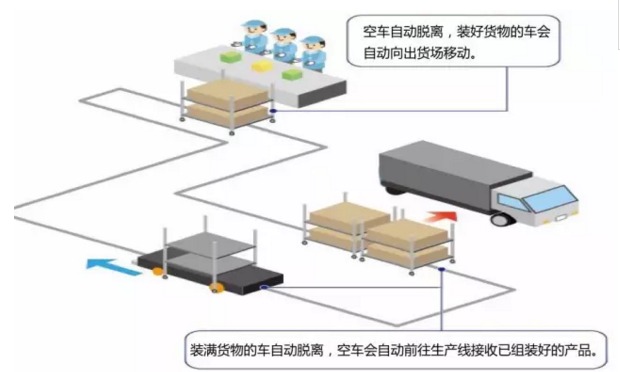 丰田产业车辆可提供包括遥控操作和导线导向在内的多款自动和半自动搬运设备,可在点对点长距离水平搬运作业、零部件补给作业、出库分拣作业等环节提供高效的牵引搬运解决方案。