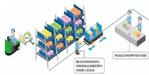 key cart将作业人员拣选好的配套零部件运送至组装线。