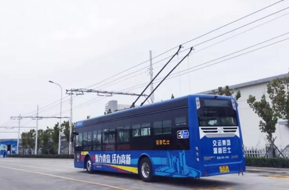 搭载国内最先进松正集电系统的新型纯电公交青岛开跑