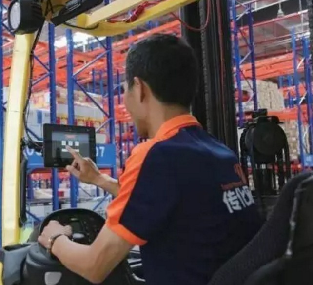 主要使用电动前移式叉车,噪音小无污染。叉车荷载重量1.5T,举升高度6M,前移距离600MM。车轮使用聚氨酯材料,减少对地面的损伤。为配合存货位置RFID识别,除此之外,还对部分叉车进行了改造,加装了车载电脑和读卡器,方便车、货、库位的关联管理。