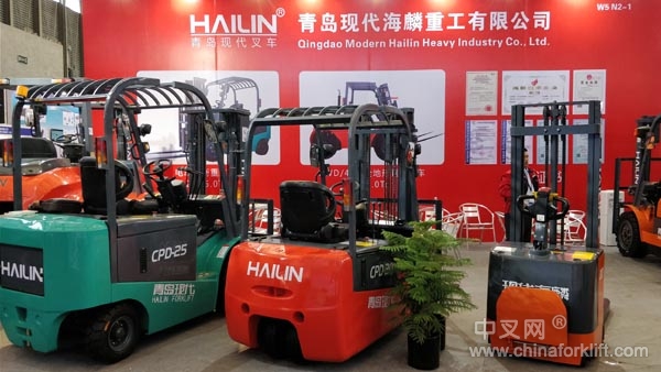 青岛现代海麟重工(W5馆N2-1)携带三款新品叉车亮相此次展会,展品覆盖三大系列:内燃叉车、电动平衡重叉车和全地形越野叉车,为与会客商们带来了一次产品盛宴。