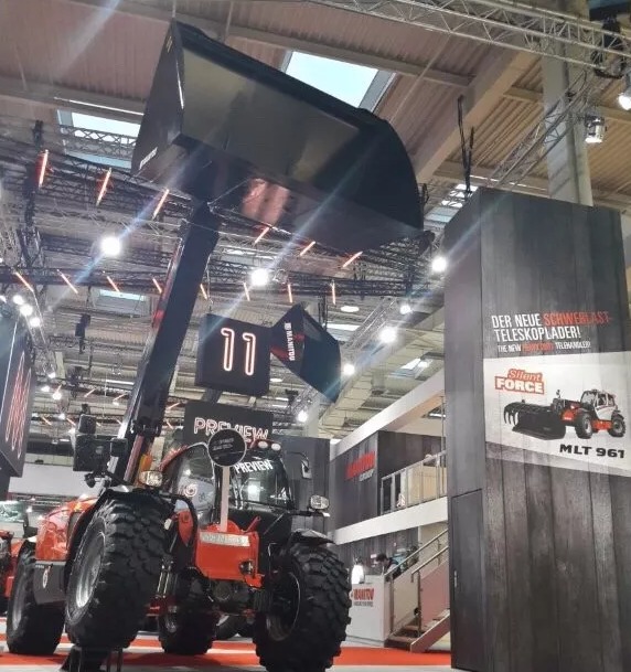 观众还可以在展台看到另一款重载型伸缩臂叉装车MLT 961-145 V +,将替换之前的型号MLT 960。许多创新设计技术也被应用到该型号,以优化用户的舒适度,包括“轻松一步”的驾驶室进出方式,同时较MLT 960,新机型在最大举升高度时的承载能力增加了40%,驾驶室绝缘层将噪音降低至74分贝(A);另外,NewAg系列可选配“智能液压系统”。