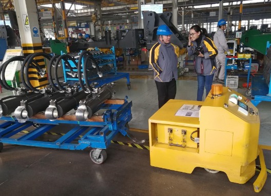与会嘉宾在车间感受AGV智能物流的便捷性与精准性