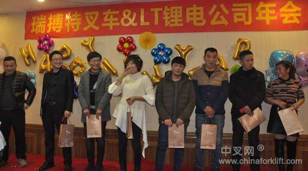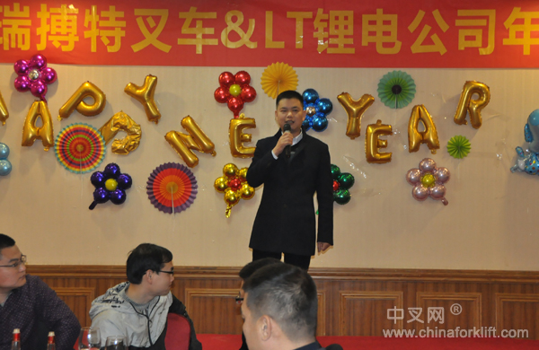年会现场,杭州昱透实业有限公司总经理盛永水分享了瑞搏特自成立四年以来的点滴,并简要地作了2017年度工作报告,报告中,盛总总结了公司2017年度取得的优异成绩,明确了公司2018年经营的总体规划,包括经营目标、重点工作等。随后,盛总还向全体员工致新年贺词,表达了对瑞搏特与力辉锂电员工及其家人最深切的祝福。盛总饱含深情的言辞,催人奋进,必将强力助推瑞搏特叉车LT锂电公司在2018年工作再上一个新台阶。