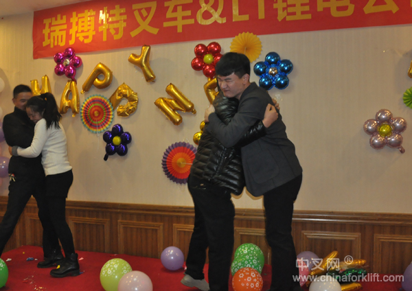 整场晚会在主持人热情洋溢的解说下,歌曲、三句半等表演形式悉数登场,可谓好戏连台,群“演”荟萃。瑞搏特人不仅做叉车兢兢业业,在晚会舞台上的他们活泼可爱,颜值杠杠,青春活力,斗志昂扬!晚会节目精彩纷呈,高潮迭起。一首由瑞搏特叉车制造部献上的“团结就是力量”一开场就博得喝彩,唱出了员工激情奔放的欢快心情;精心准备的三句半《夸夸咱公司》一经上台,就赢得了台下掌声阵阵,伴随着各类游戏环节,必不可少的抽奖环节也在其中,大家不仅收到贴心的小米手环、丝巾等实物奖品,更收到了现金奖励。在一片欢声笑语中,年会落下帷幕。