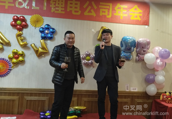 杭州力辉新能源科技有限公司董事长郑晓辉先生在致辞中表示:“缘分使我和昱透走到一起,才有今天站在这里和在座的兄弟姐妹们一块辞旧迎新!加入昱透后,给我最大的感受是氛围非常融洽。专注才能成功,精益求精,打造公司核心竞争力,为实现公司稳健而快速地发展,为追求个体的物质幸福和精神幸福而奋斗!希望2018年,在大家共同努力之下,让瑞搏特仓储叉车品牌在市场上独树一帜,走出一条不同的路,配合LT锂电,把仓储车推向另一个高度。在这提前祝各位兄弟姐妹们在新的一年家庭幸福,身体健康!”