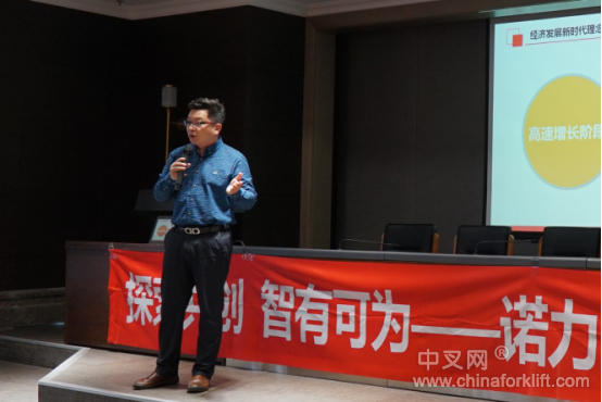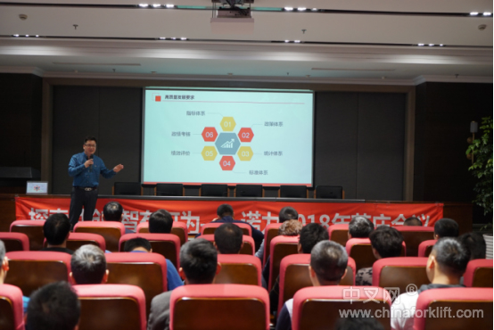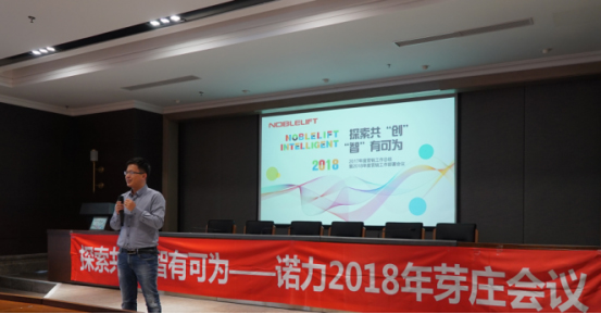 在会议中,第一个环节是由诺力智能装备股份有限公司的国内销售部副部长陈利杰先生发表了以《探索共“创”,“智”有可为》为主题的演讲,对2017年度的营销工作进行了总结,当然,更重要的是对2018年度的营销工作进行了全面的部署。