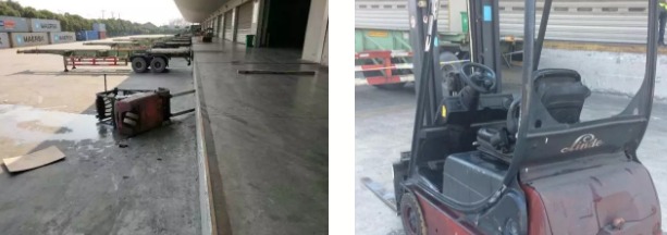 转载 2018-03-14 10:12 深圳唯创 来源:深圳唯创事故概况: 2018年3月4日星期日上午8点左右,南汇新城镇某物流公司,一名叉车司机在驾驶叉车作业时途经月台区域,由于违规操作(车速过快,未佩戴安全带)以及月台积水等原因造成叉车从月台跌落,叉车司机同时飞出驾驶座被倒下的叉车压倒左侧大腿造成股骨粉碎性骨折,治疗中发生并发症,导致死亡。