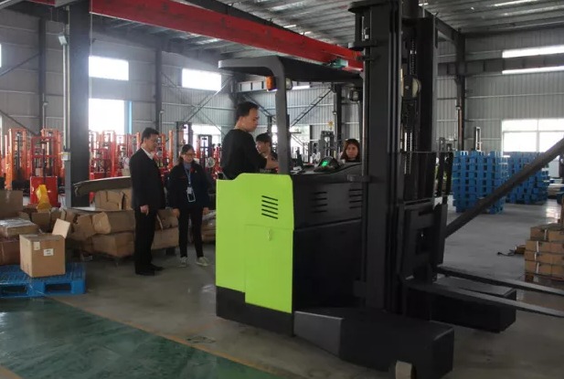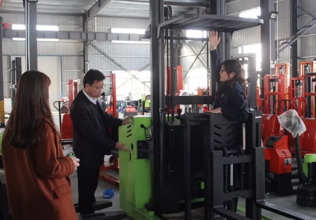 在装配现场,看到由安徽宇锋自主研发生产的四向叉车时,桂主任仔细询问了该产品的产能、生产规模、产品性能、生产成本以及下游市场情况。当了解到该产品的部分工艺指标与欧美国家的标准持平时,桂主任强调:一定要在产品的关键技术上实现突破,为国内仓储设备行业的发展起到带头和引领的作用。