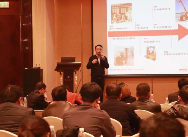 ☝ 曼尼通中国总经理王洪涛先生介绍曼尼通集团概况和历史