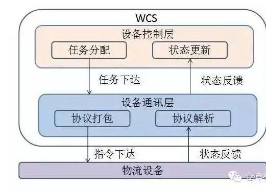 除以上作用外,还应注意 WCS通常并不直接控制物流设备的动作,而只是协调多种设备的工作。因为每一个设备都有自身的控制系统,在自动化系统中最常见的就是PLC,WCS只需要和PLC中的控制程序通讯即可。其次,如果系统中的每一个设备都可以自主地完成某个特定流程(设备自主的控制程序相对比较稳定,以及拥有成熟的优化算法),则WCS只需接受WMS任务发送,根据本库房作业流程的特点,制定出合理的分配策略或执行策略来发送协调指令,以减少整个系统的通讯量,从而提升整个系统运行的效率和可靠性。