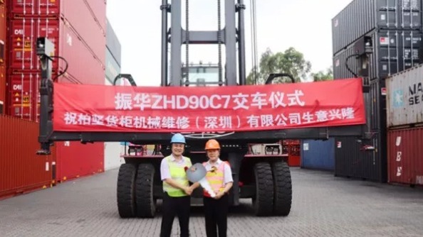 此次交车便由深圳利驰港机设备租赁有限公司负责,其交付的ZHD90C7空箱堆高机正是由上海振华重工集团生产,可操作7个空箱堆垛作业,利驰智装重车运营总监黄卫列表示,此次交付的是一台全新的产品,这打破了行业租赁小规模且基本是二手设备投入市场进行租赁的格局,用欧美的方式进行真正的经营性租赁,成为中国重车租赁行业中第一个“吃螃蟹”的人。