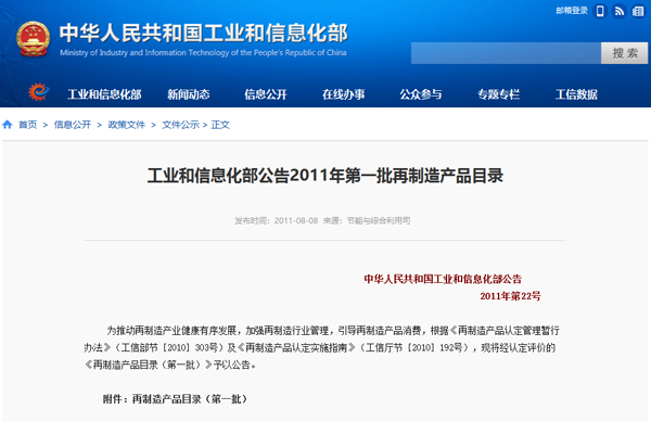 2016年2月22日,工信部公布了《机电产品再制造试点单位名单(第二批)》的通知,试点单位名单共73家企业和3个再制造产业集聚区,包括山东临工工程机械有限公司在内的14家工程机械企业,包括厦门厦工机械股份有限公司在内的11家内燃机及配件企业,在四川建立一个再制造产业集聚区、安徽建立了两个再制造产业集聚区的试点通知。试点的时间是从2016年至2018年,估计在今年或明年会公布通过验收的机电产品再制造试点单位名单(第二批)的企业名单。