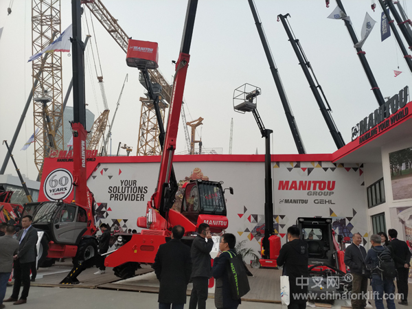 2018年11月27—30日,为应对中国市场的变化,全球领先的越野物料搬运设备制造商曼尼通集团在第九届上海宝马工程机械展(bauma CHINA)上,展示了适合中国市场特点的物料搬运和施工设备。产品包括伸缩臂叉装车,全新紧凑型设备系列以及高空作业平台。