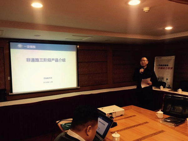 一汽解放发动机事业部营销服务部重庆分公司营销经理王剑做发动机产品介绍
