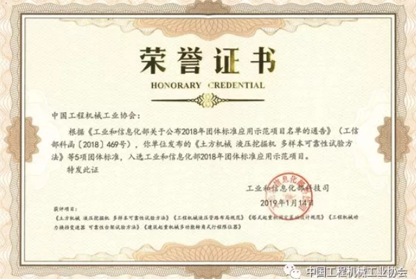 其中一项团体标准T/CCMA0056-2018《土方机械液压挖掘机多样本可靠性试验方法》,已列入国家科技支撑计划“工程机械节能减排关键技术研究与应用”项目。本标准解决了我国液压挖掘机可靠性研究方法和验证问题,为改善产品质量指明了方向,可扩展到其他工程机械产品,促进行业高质量发展与产业升级换代,提升了我国工程机械在国际上的竞争优势,具有突出的经济效果。