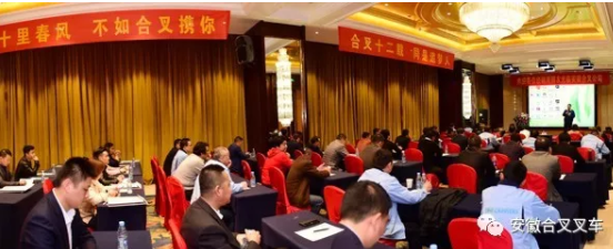 随后,公司叉车研究所所长钟传浩向大家展示了2019年合叉叉车在产品开发、性能改进、行业应用等方面的计划与目标。平安融资租赁公司胡非经理向在座嘉宾介绍了新的金融合作模式——“融资租赁”。公司总经理助理陈萍在题为“重品质满交期”的主题报告中指出,好的产品离不开专业领先的技术、生产、工艺、质量等多个团队的通力合作,2019年合叉叉车承诺为市场和客户及时有效地提供更加满意的产品和解决方案。最后,销售部陶波部长向全体经销商介绍了合叉叉车2019年营销政策。