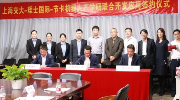 签约仪式在理士国际董事局主席董李先生、上海交通大学机器人研究所所长朱向阳教授、机械与动力工程学院副院长熊振华教授、机器人研究所副所长言勇华教授,节卡机器人董事长李明洋先生的共同见证下举行。