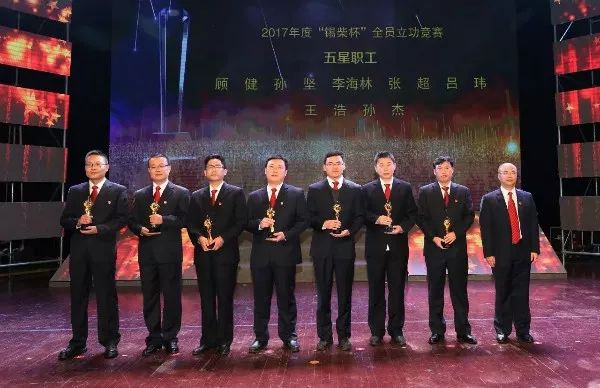 王浩(右四)被评为2017年度“锡柴杯”全员立功竞赛五星职工