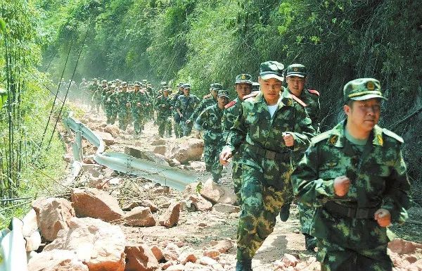 第一次,是多年以前,地震后桥路瘫痪、信息不畅,震后第十五天左右,看见解放军出现在眼前,那一面鲜艳的五星红旗在他手中飘扬,就在那一刻,瞬间整个人被震撼,原来我们没有被忘记,原来他们一直在来的路上,我们有救了,像一束光划破绝望的黑夜,点亮希望。祖国在那一刻就是一面国旗,就是希望。