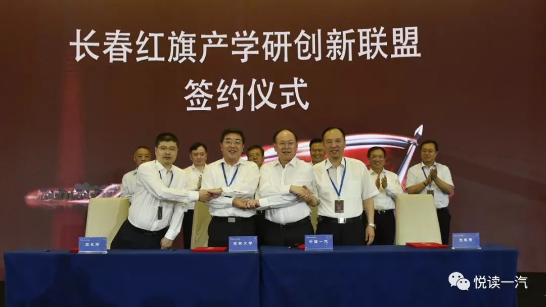 发布会上,长春市副市长王海英宣布汽车产学研创新联盟、汽车产学研创新基金正式成立,并举行签约仪式。