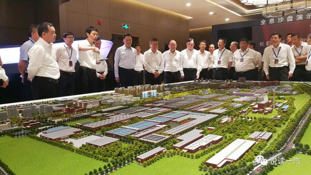 集团公司领导和嘉宾现场参观红旗小镇虚拟沙盘及实体沙盘,观看了红旗小镇介绍视频。