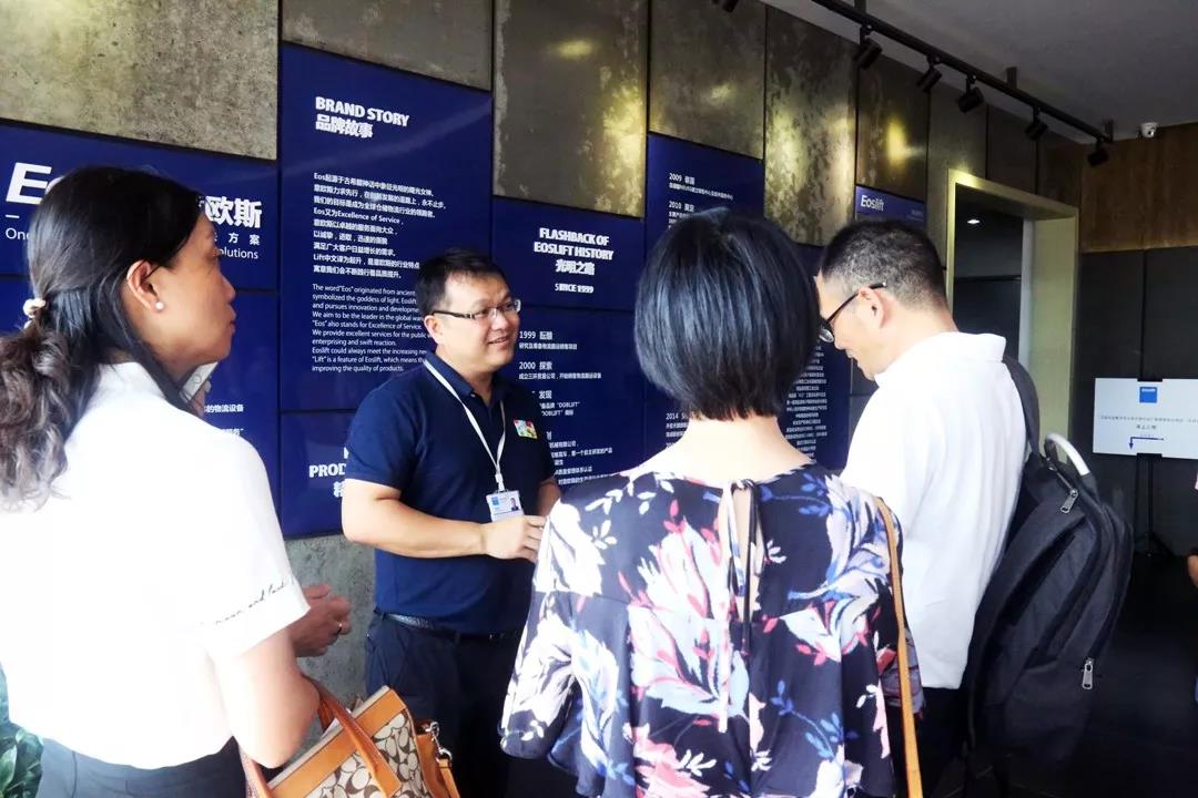 代表团一行在杨海青副总裁的陪同下参观了公司展厅与智能化立体仓储设备制造车间,期间杨副总对公司人工智能及智能仓储设备方面的新产品和发展前景进行了详细介绍。