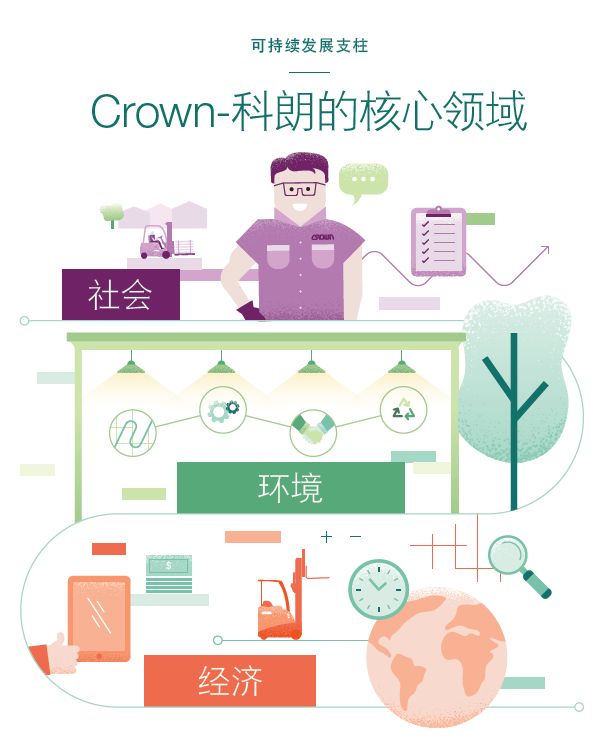 Crown-科朗将可持续发展作为公司理念,提供质量可靠、节能环保的叉车设备。Crown-科朗特有的垂直整合制造体系,使其生产的叉车设备中,高达85%的零部件实现高水平环保合规。