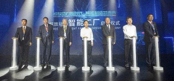 随着陆志坚、朱启昕、李培根、曹文彬、尚兴武、钱恒荣,海鑫汽车贸易公司董事长何海军共同开启智能工厂大门,解放动力智能制造工厂正式启用。