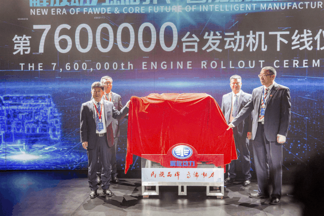 随着闫峰、王志才、钱恒荣以及耿开学共同揭幕,解放动力第760万台发动机精彩亮相。解放动力760万台发动机下线,标志着解放动力又一次在重型柴油机领域站上了行业之巅。
