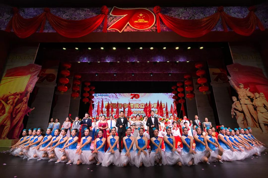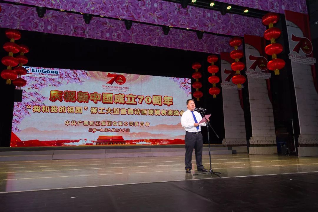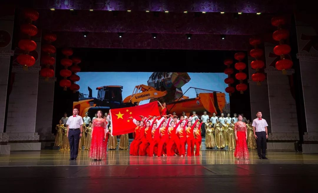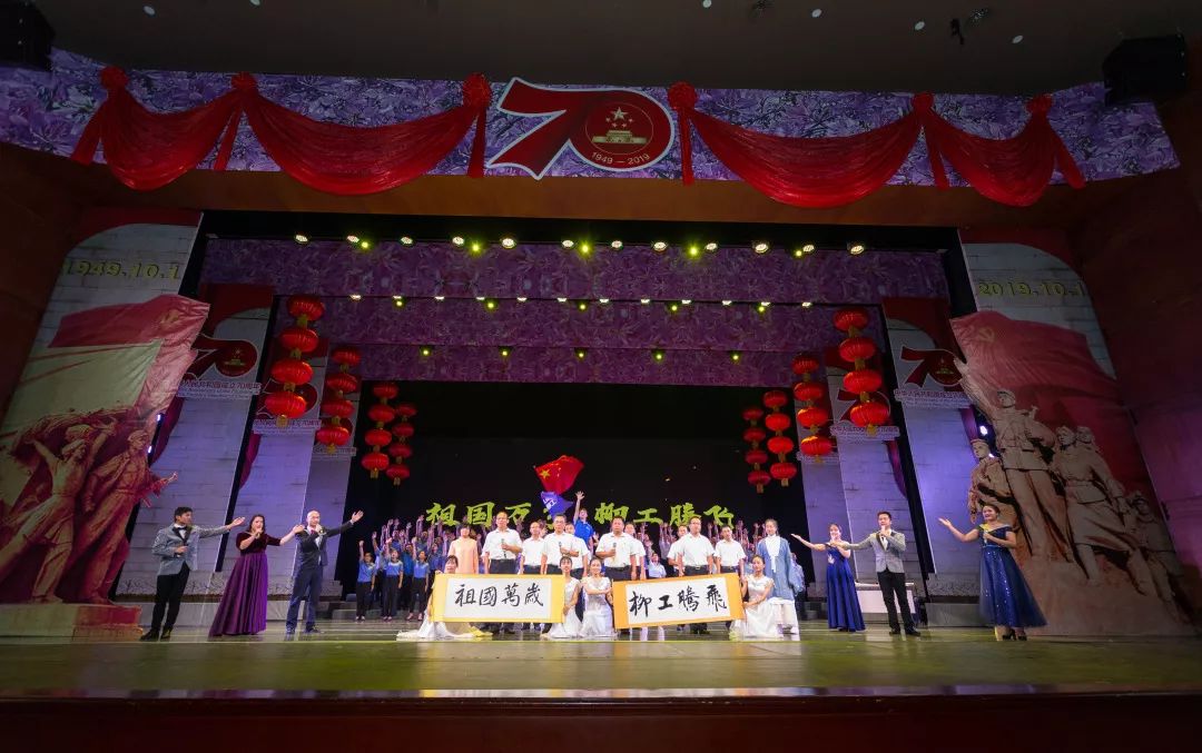 晚会以音画诗歌为媒,歌颂祝福伟大祖国,激励广大职工凝心聚力,共同书写新时代新篇章。柳工集团公司总裁郑津,党委副书记、工会主席李于宁等领导参加了晚会,共迎新中国70华诞。可容纳1500人的艺术中心大剧场内座无虚席,国旗飘扬。
