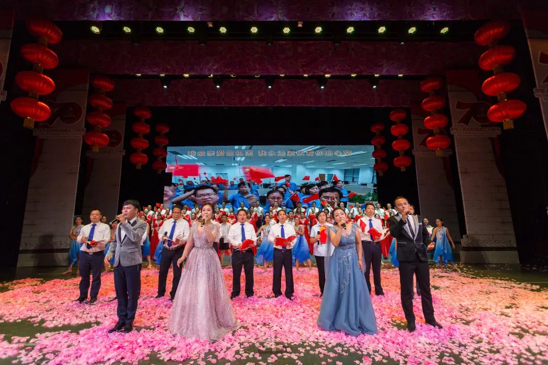 当耳熟能详、历久弥新的《我和我的祖国》响起,伴随着熟悉的旋律,全场洋溢着“我和祖国一刻不能分离”的真情。巨幅的五星红旗在舞台上徐徐铺开,从舞台向全场传递,大家手捧着鲜艳的五星红旗,祝福伟大祖国繁荣富强,两个小时的晚会圆满结束。