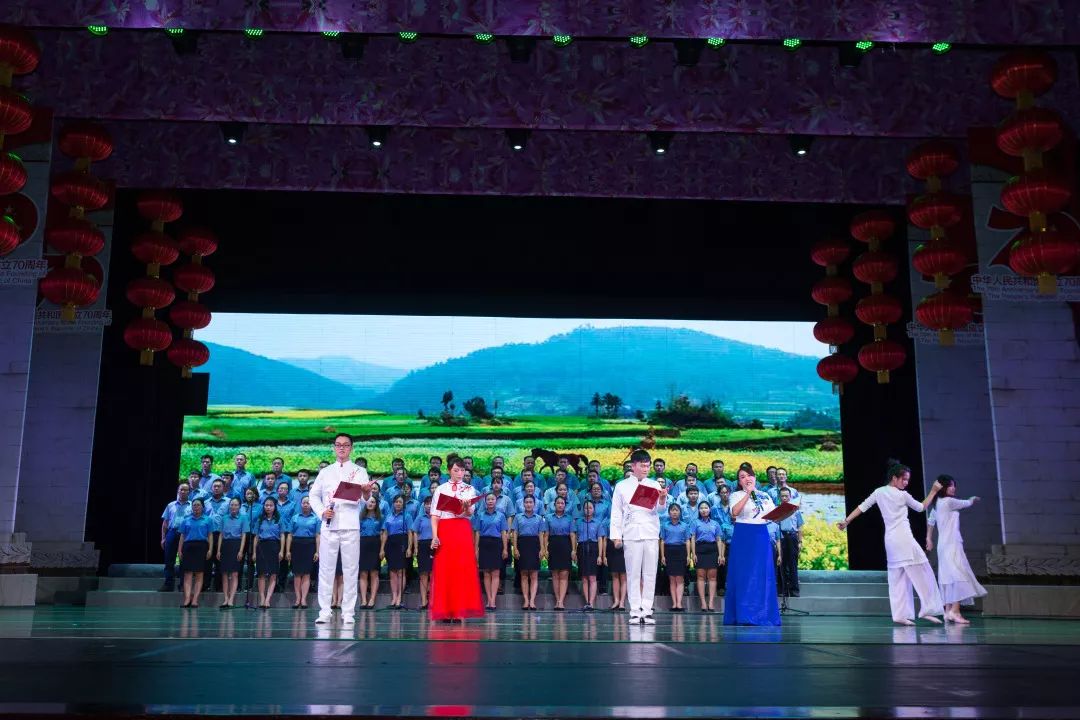 最美诗篇献礼新中国70华诞。9月28日晚,“我和我的祖国”庆祝新中国成立七十周年——柳工大型音舞诗画朗诵晚会,在柳州市艺术中心举行。