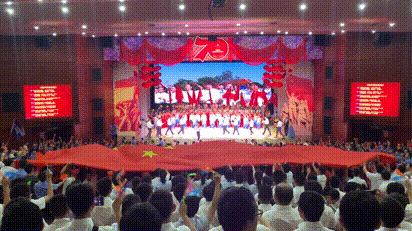 “五星红旗迎风飘扬,胜利歌声多么嘹亮,歌唱我们亲爱的祖国,从今走向繁荣富强”,在《歌唱祖国》的千人合唱声中,晚会正式拉开序幕。