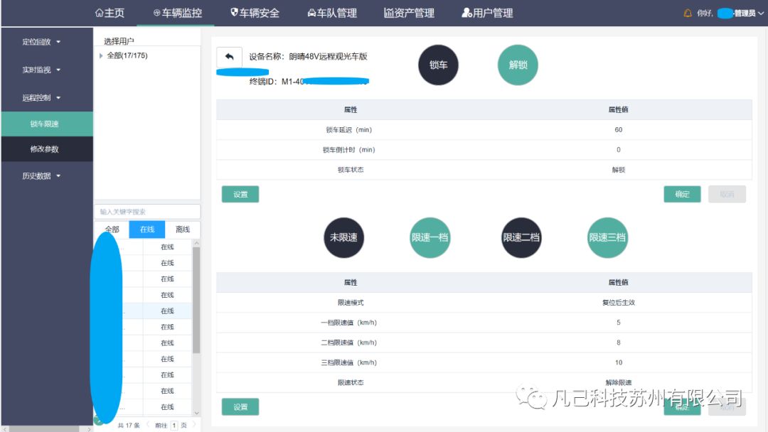 在参观鑫威新能源车辆有限公司工厂时,嘉宾领导饶有兴趣的了解凡己科技提供的电动、智能、网联的一站式解决方案。享誉市场的鑫威八吨电动花车上搭载着双驱FJ D1控制器和FJ M1内置远程终端的智能仪表,通过凡己科技提供的用户账户独立的共享云平台提供多种手段管理运营车队的效率和安全,包括电子围栏、远程监控车辆运行状态、远程故障诊断、远程调校车辆、远程锁车限速等。