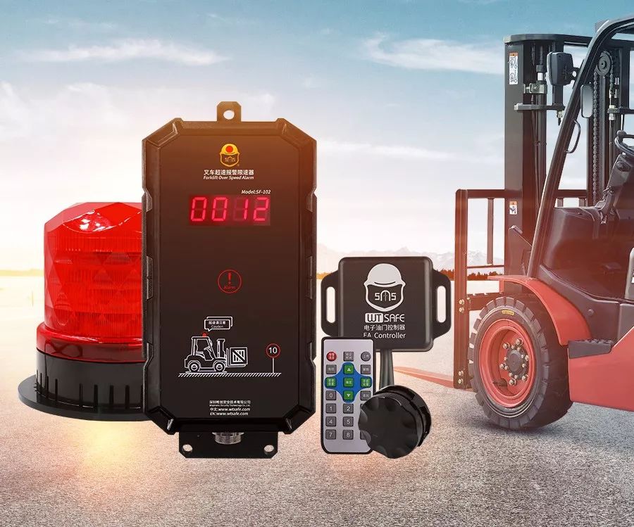 叉车上可安装叉车限速去,通过声光提醒经过行人,注意安全,请勿靠近叉车,当叉车超速时,可以自动限速。