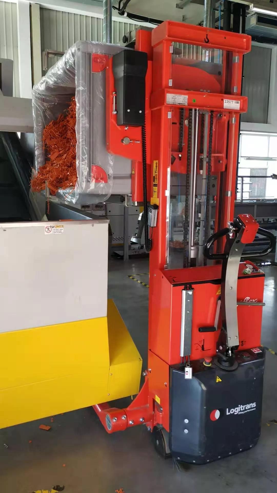 乐吉腾箱体翻转车可应用于各类各业,例如:天津某环保行业公司,使用乐吉腾箱体翻转车,倾倒废料到回收利用流水线。