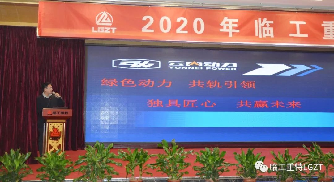 2020年1月5日,以“质量环保·感动服务“为主题的临工重特2020年首次新产品推介会在临沂隆重召开。临工重特总经理李述华、临沂/日照等经销商代表、云内动力山东经理刘晓波以及来自临沂市区、县区的家乡客户400余人参加大会。