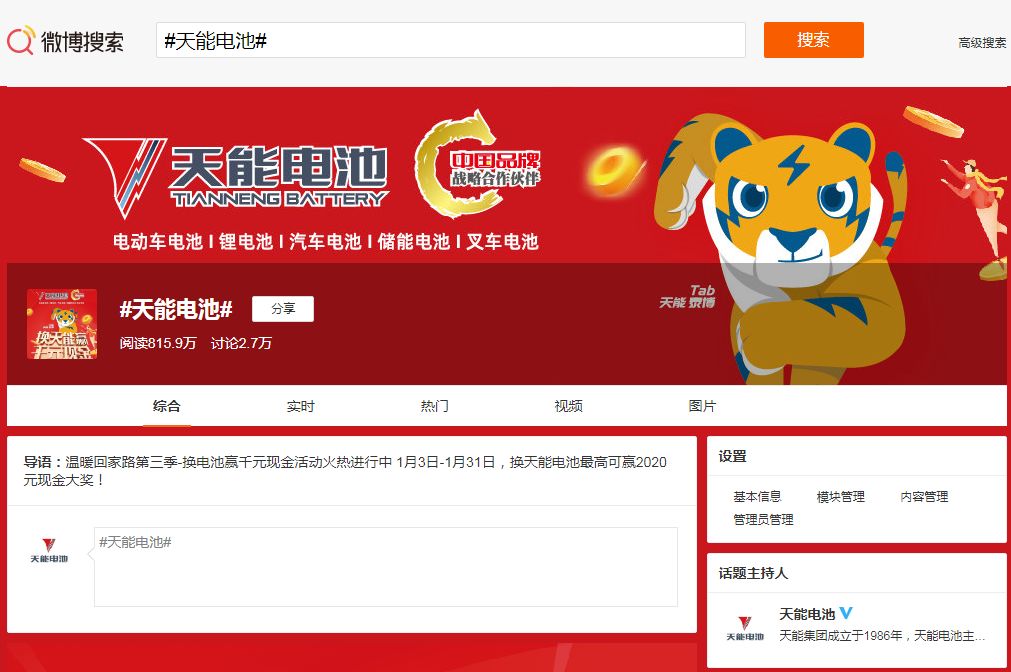 #天能电池#话题登上了新浪微博热搜榜