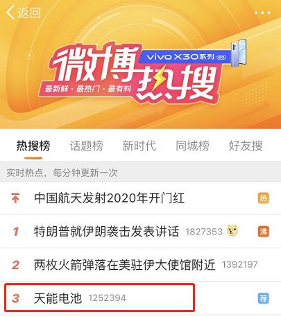 不得了,天能登上微博热搜榜,一开屏就能看到!