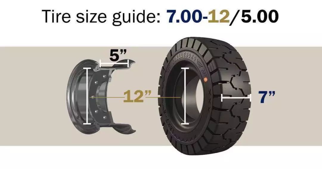 7.00-12/5.00,一个标准的高弹性实心轮胎尺寸标注方式;