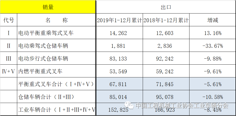 如果需要更多详细数据,请关注分会即将印发的《2019年国内外工业车辆市场概况》。