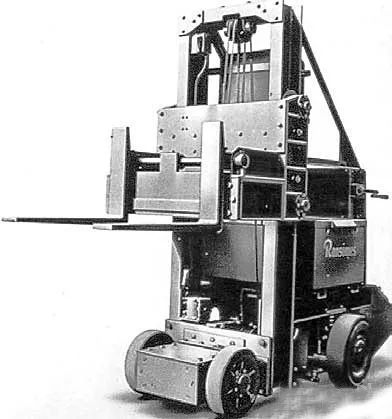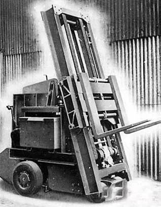 第一台欧洲叉车(英国伊普斯维奇的Ransomes&Rapier)配备了电动驱动器和电缆桅杆