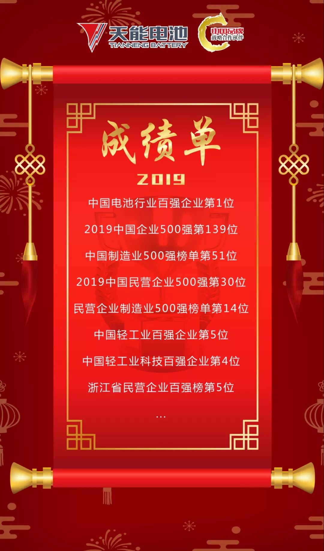2019年5月31日,在人民大会堂举行的“2019中国品牌500强发布会”上,天能品牌价值高达601.78亿元,在电气机械和器材制造业中稳居鳌头。最新的2019成绩单,让我们见证了一个实力天能!天能响应“品牌强国”战略,通过打造行业领军品牌、民族工业品牌,为经销商、30万家门店全方位赋能,助力企业高质量发展。