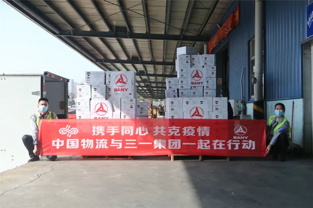 目前,三一已从海外运回180万只医用口罩、11.5万套防护服、41万只医用手套和2万个护目镜。