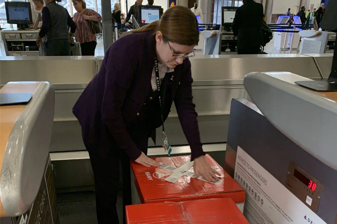 研发工程师于光远,2月1日,他就“人力”带着2大箱物资从亚特兰大飞往洛杉矶,在当地志愿者的协助下,赶在当天最后一趟航班起飞前,将物资及时寄出。
