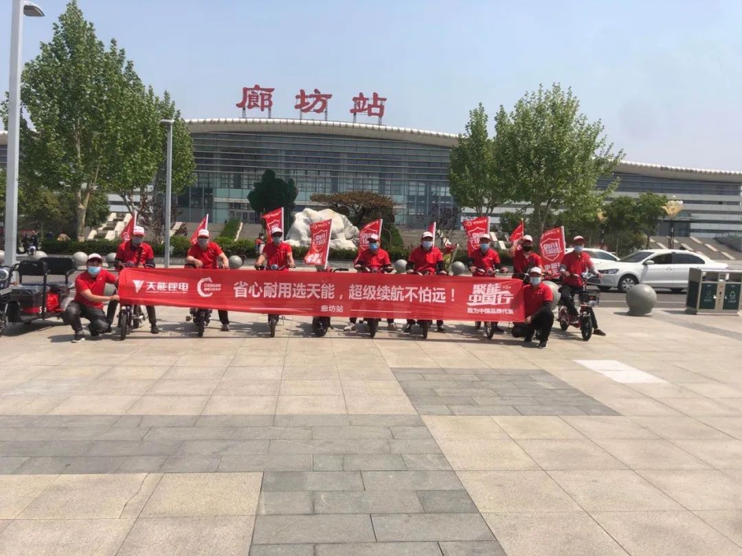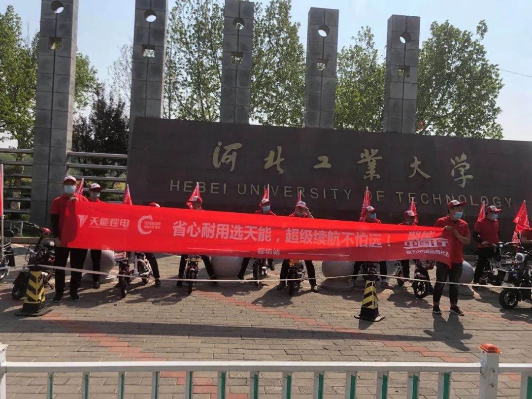 联京津之廊,环渤海之坊。聚能中国行——天能锂电全国拉力赛来到京津走廊明珠——廊坊!本次拉力赛与雅迪、新日、爱玛、台铃、踏浪、五星钻豹、立马、大安八大品牌强强联合,共十辆电动车参赛,全部配备了天能锂电!