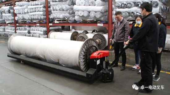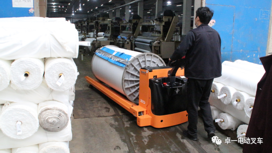 卓一电动叉车非标定制盘头搬运车纺织面料行业应用案例