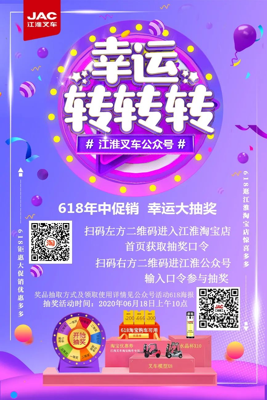1、幸运大转盘抽奖活动,您仅需从江淮叉车淘宝商城首页获取抽奖口号,在公众号回复抽奖关键字即可参与。
