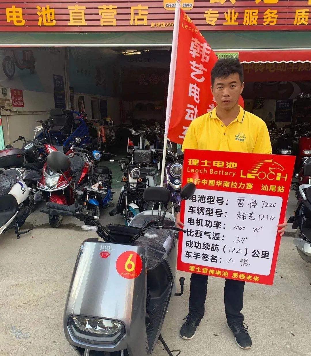 7月18日,理士携手广东汕尾当地绿源、中铃、韩艺及大阳四大品牌电动车,备战8辆参赛车辆,其中一辆配备了竞品电池,其他全部配备理士大容量雷神电池。